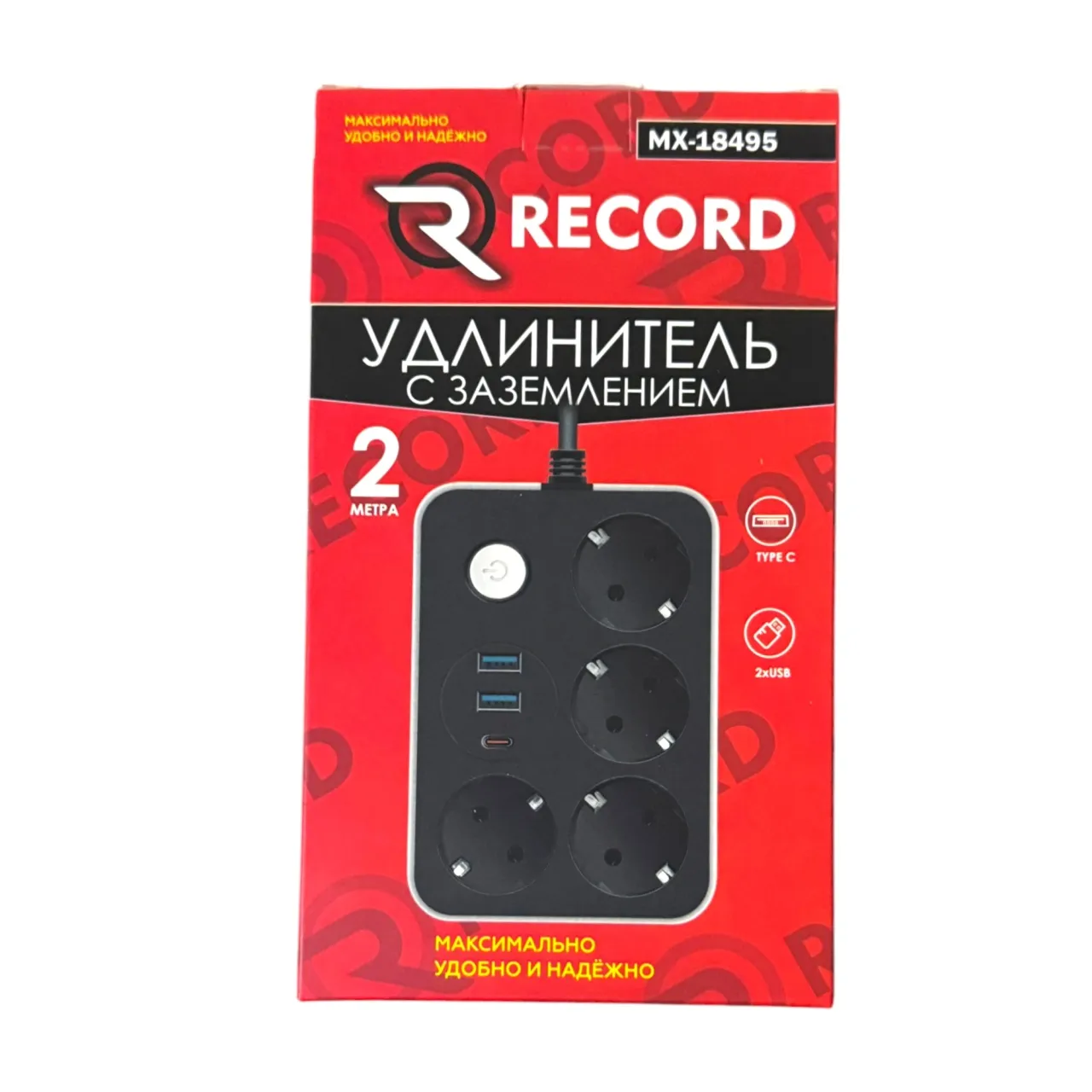 Удлинитель с заземлением 2 м, плоский, 3 розетки EU_UK_US, 5 USB портов,Type C,T05, "MAXIMUM" MX 148