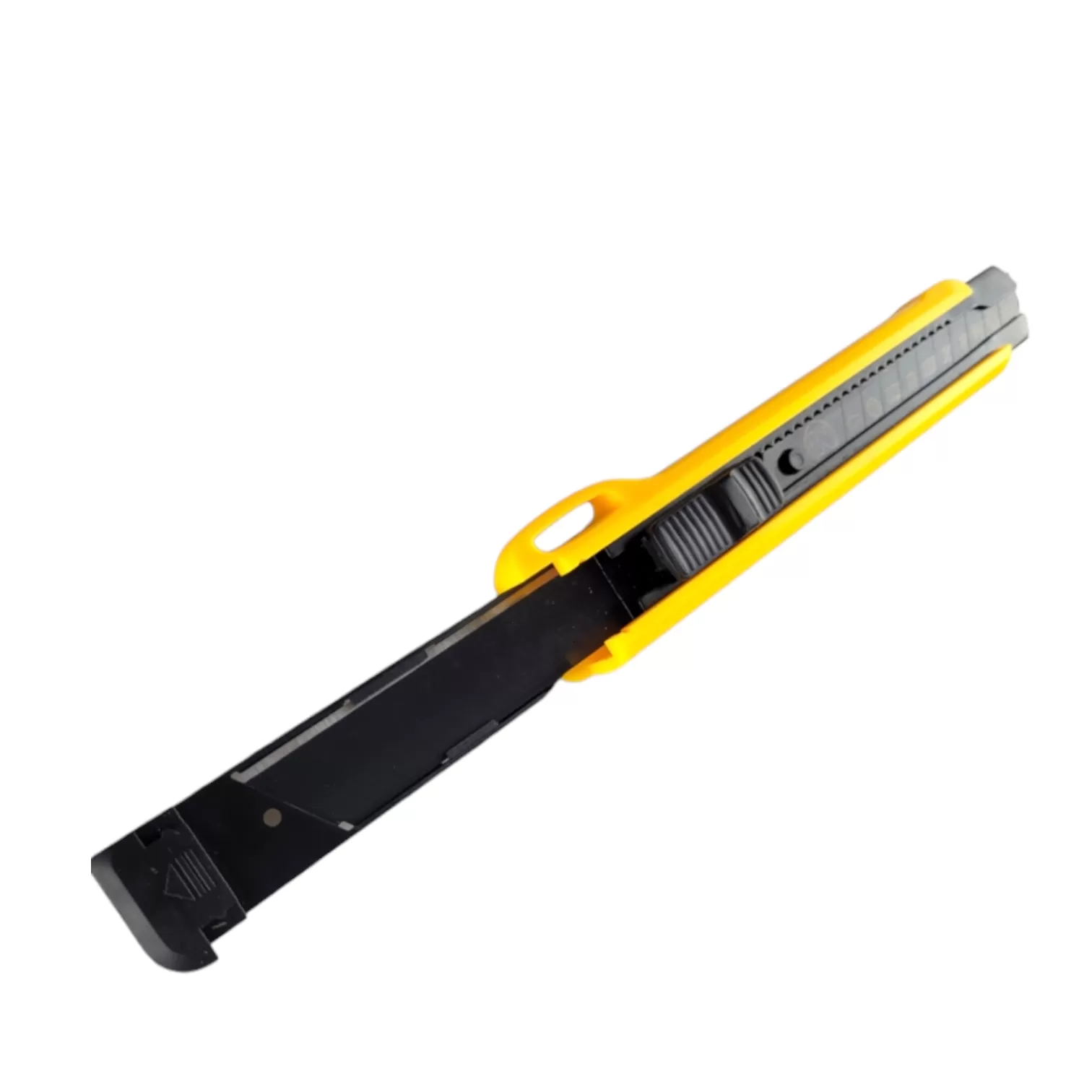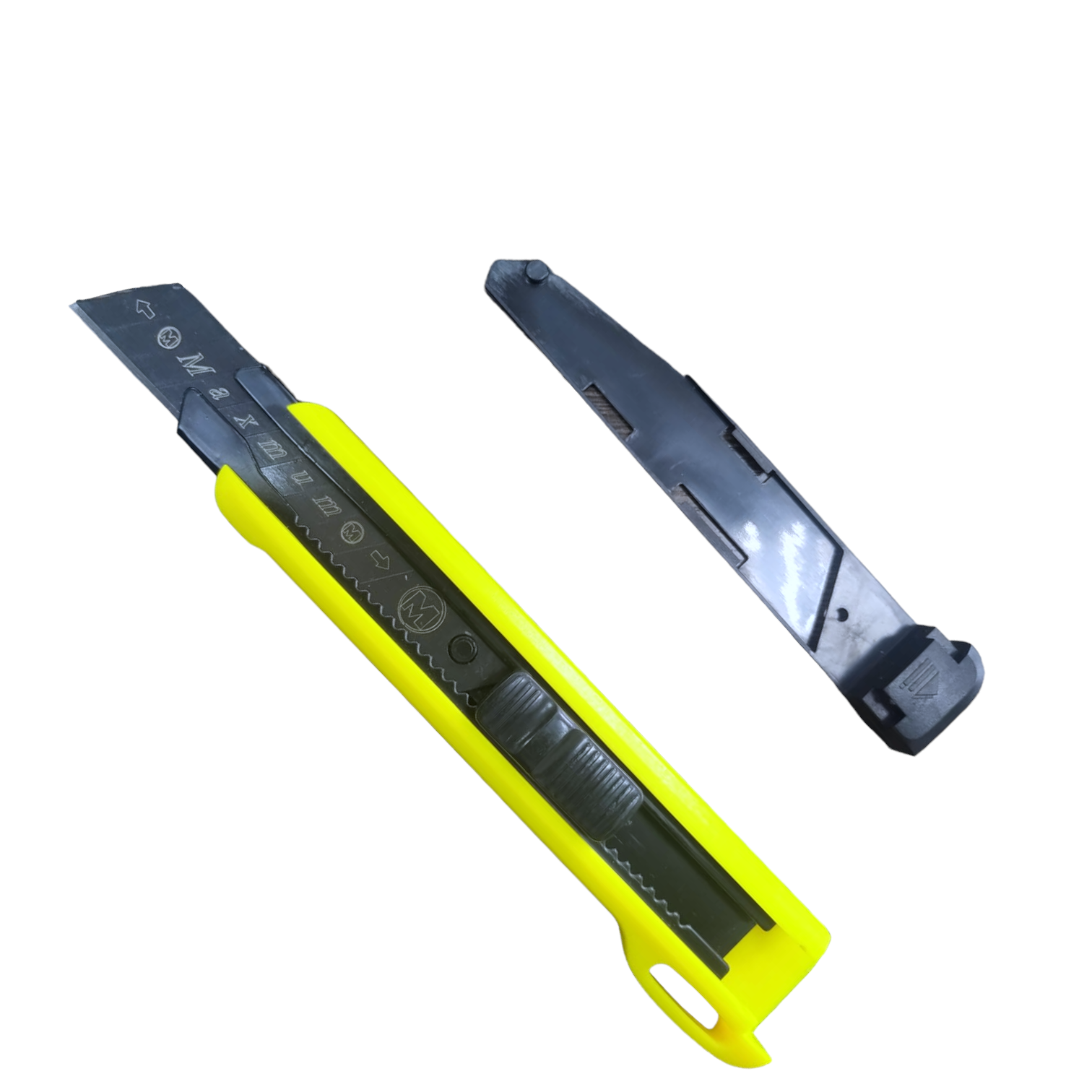 Нож обойный пластиковый с металлической направляющей и автофиксатором от "MAXIMUM QUALITY TOOLS" поставляется с одним черным лезвием 18 мм из стали SK5. Используется нож для обоев, кожи, линолеума, гипсокартонных и гипсолитовых плит, бумаги, картона. Металлическая направляющая усиливает корпус и надежно фиксирует лезвие. Длина инструмента 160 мм. Лезвия для канцелярского ножа изготовлены из качественной черненной стали SK-5, автоматический замок позволяет точно регулировать длину.