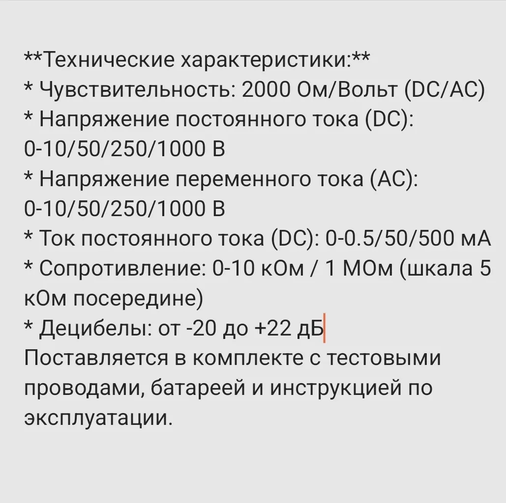 Чувствительность: 2000 Ом/Вольт (DC/AC)