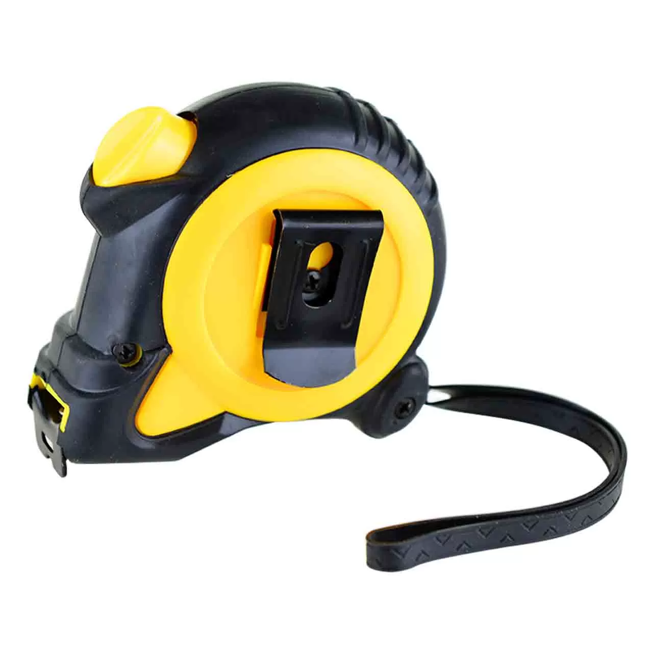 Измерительная рулетка оборудована силиконовым ремешком и специальным зажимом на задней панели, который позволяет фиксировать инструмент на поясе.