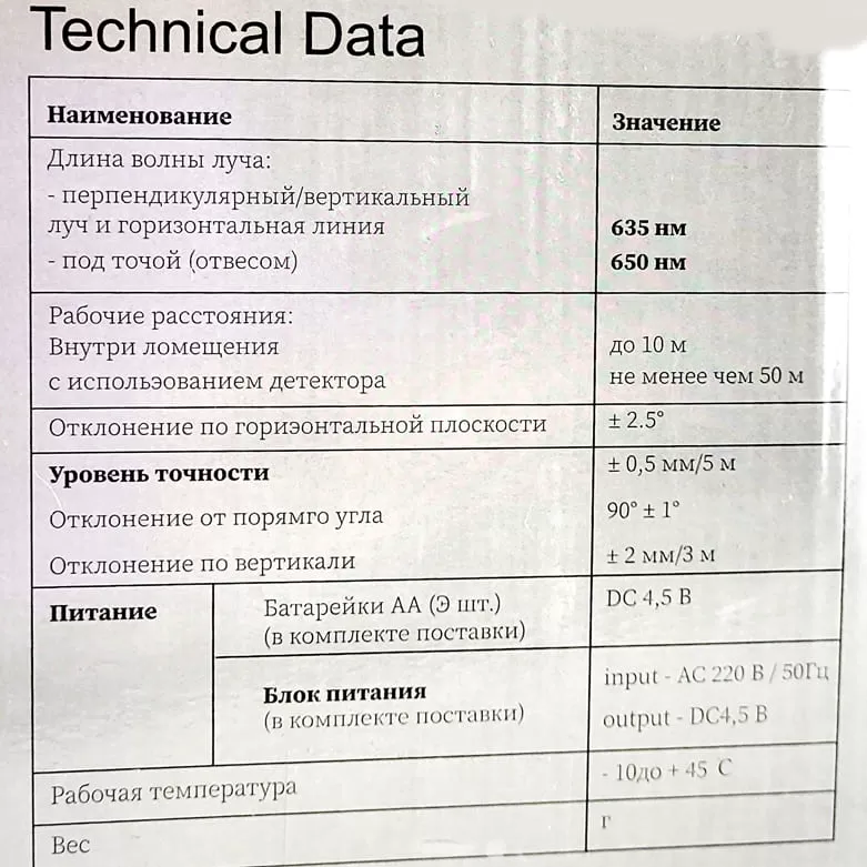 В комплекте поставляется: уровень, кейс, очки, ремень, зарядное устройство.