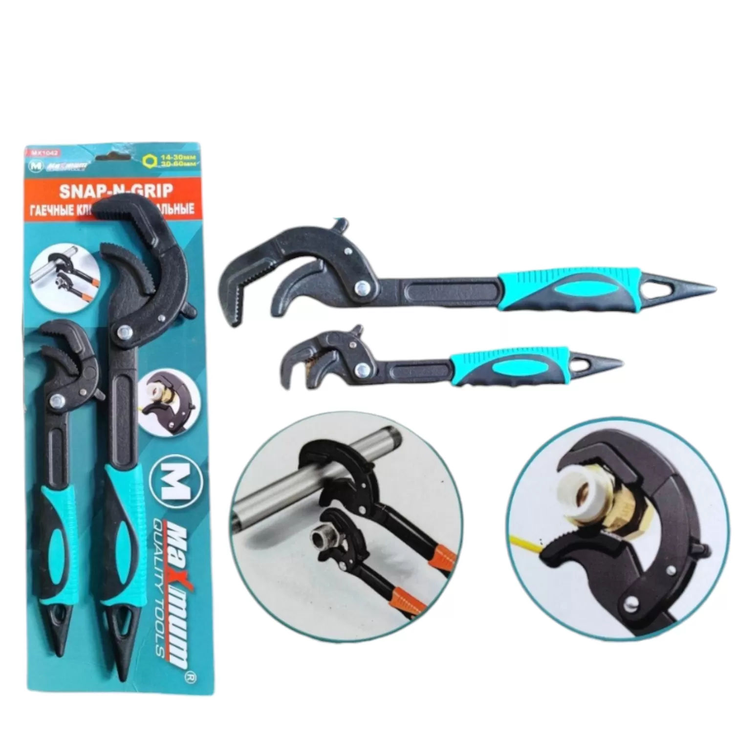 Это уникальный инструмент с технологией автоматической подстройки под любой размер и форму гаек и винтов. Гаечные ключи адаптированы для захвата круглых труб и прутьев, в том числе, с квадратным сечением. Регулировка осуществляется прямо на детали простым нажатием на специальный выступ на большой губке.