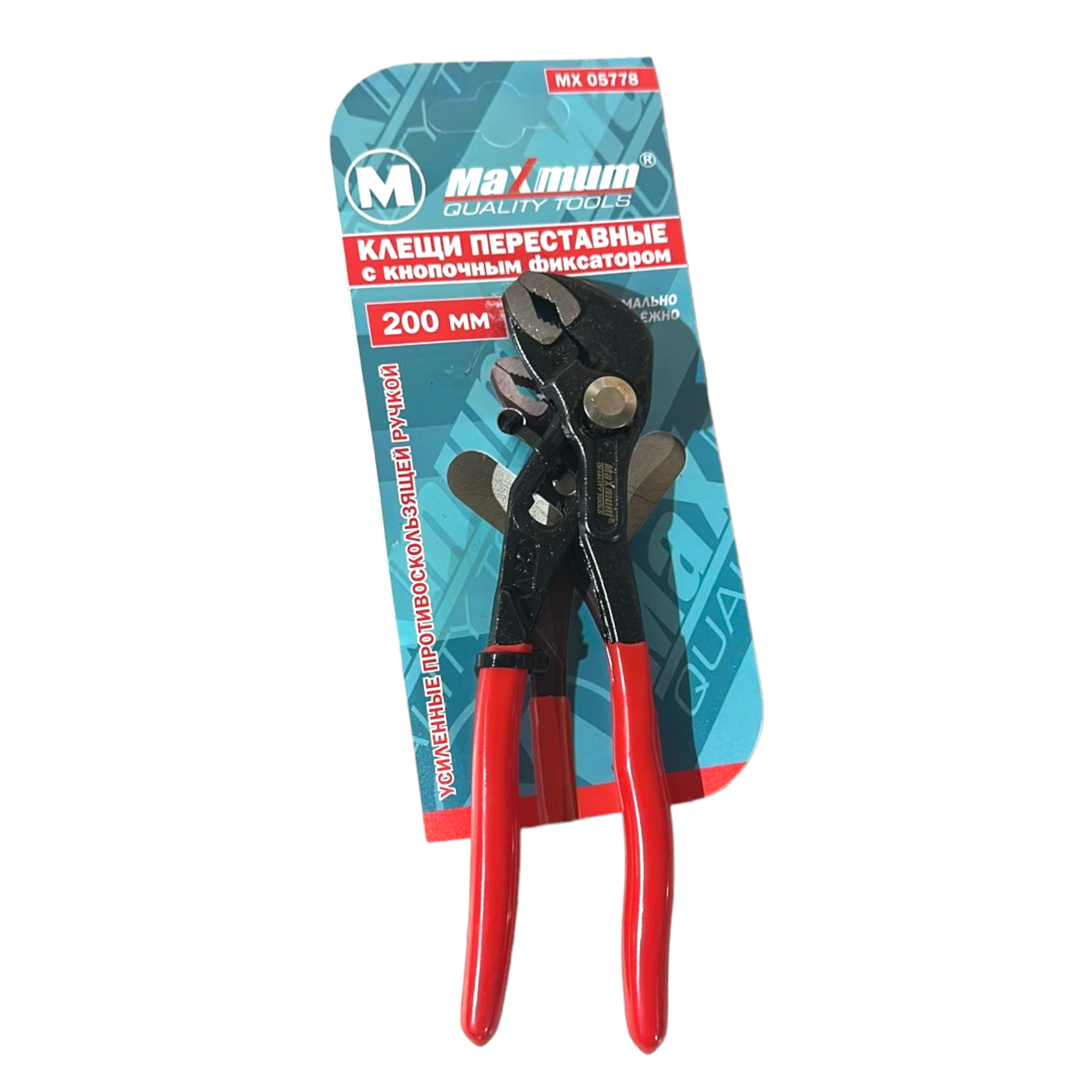 Клещи переставные с кнопочным фиксатором 200 мм от Maximum Quality Tools могут применяться для фиксации и отворачивания/заворачивания предметов, не имеющих специального рабочего профиля. Рабочие губки с насечкой максимально надежно фиксируют даже поврежденную гайку или обрабатываемую деталь. Клещи с кнопочным фиксатором изготовлены из хромваннадиевой инструментальной стали (CrV) с закалкой рабочих поверхностей. Клещи 200 мм гарантируют прочный захват различных по форме и диаметру предметов. Механизм с кнопкой позволяет быстро регулировать раскрытие рабочих губок и ускоряет время позиционирования клещей на крепеже. Обливные резиновые рукоятки не скользят в руке.