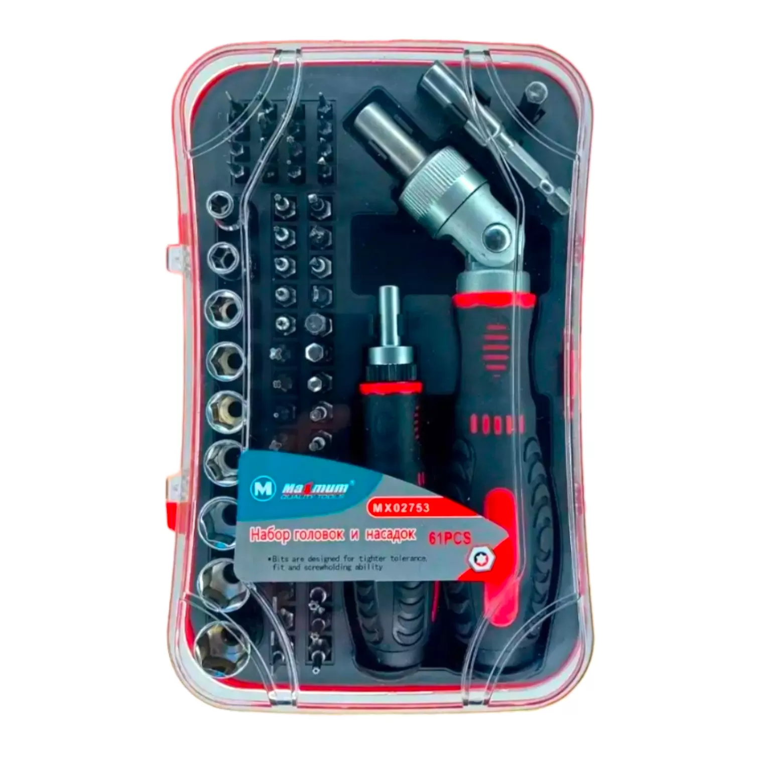 Набор отверток с храповым механизмом 61 в 1, Maximum–это профессиональный портативный аппаратный набор инструментов от бренда «Maximum». Набор предназначен для мелких монтажных работ и ремонта оборудования. Отвертка, выполнена из CRV стали, с магнитным механизмом.