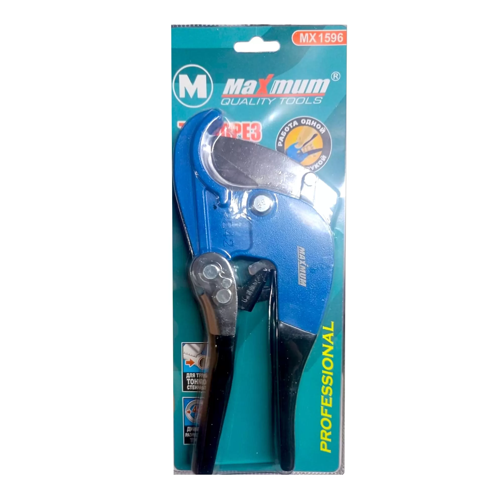 Резак для труб 42 мм от бренда "MAXIMUM" — качественный профессиональный инструмент для резки пластиковых труб, плинтусов, профилей, резиновых шлангов. Усовершенствованный храповый механизм позволяет отнести инструмент к профессиональной линейке.