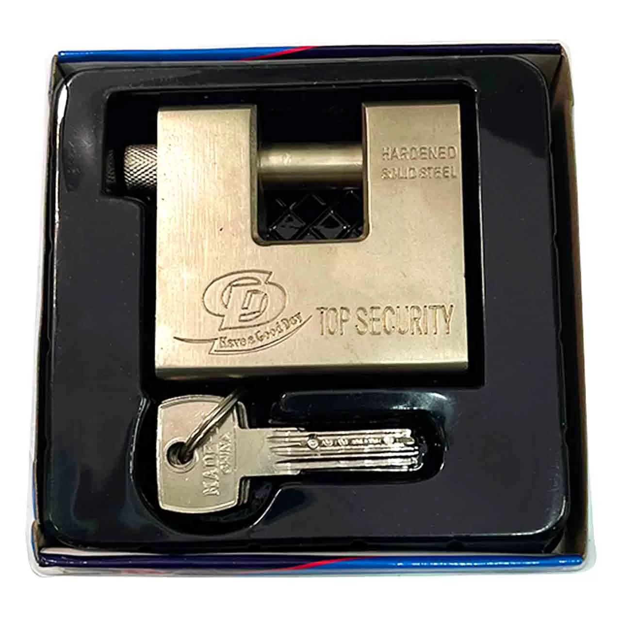 Навесной замок с автоматическим запиранием имеет надежный цилиндровый механизм и 3 евро ключа в комплекте. Вместо дужки у П-образного замка ригель из высокоуглеродистой стали, сильно углубленный в корпус. Когда замок подвешен, ригель почти целиком скрывается в корпусе и за проушинами.