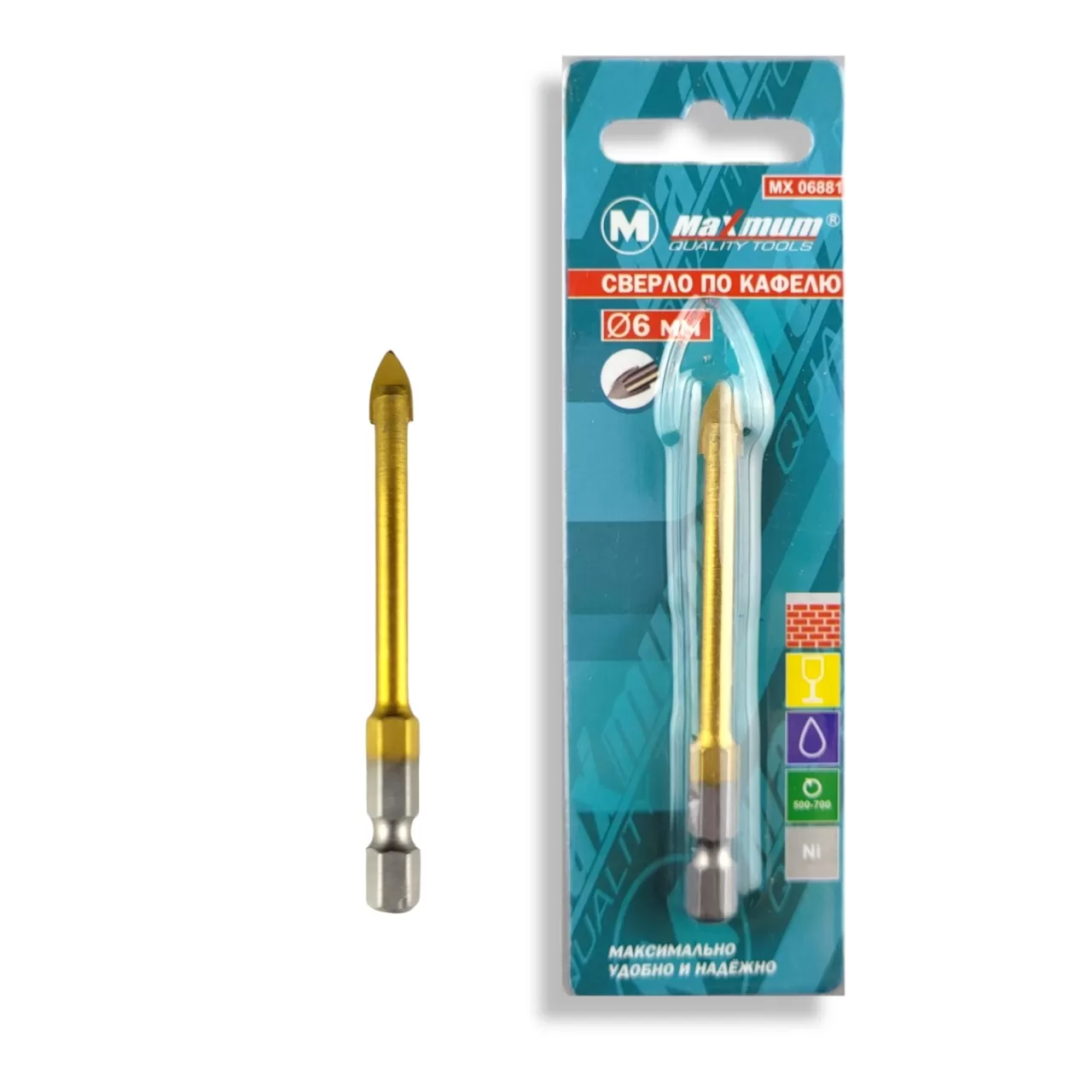 Сверло от "MAXIMUM" диаметром 6 мм предназначено для тонкой и деликатной работы по керамике, керамограниту, пластику, плитке, поликарбонату, стеклу и фарфору.