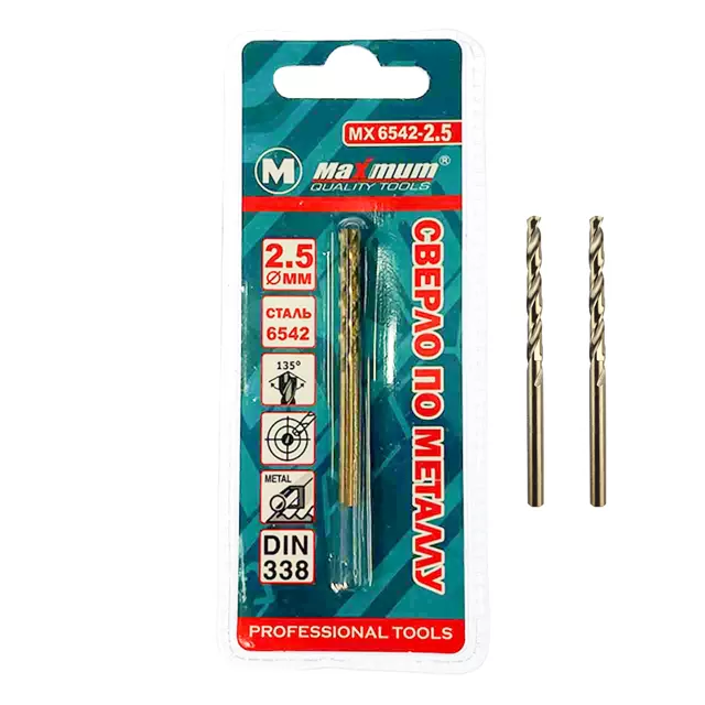 Сверло по металлу 2,5 мм с цилиндрическим хвостовиком применяется с пневматическими, электрическими дрелями, в сверлильных станках, а также, при наличии специальной оснастки, в универсальных токарных, фрезерных станках и станках с ЧПУ. Сверло изготовлено быстрорежущей стали DIN 338, что делает его прочным и устойчивым к излому.