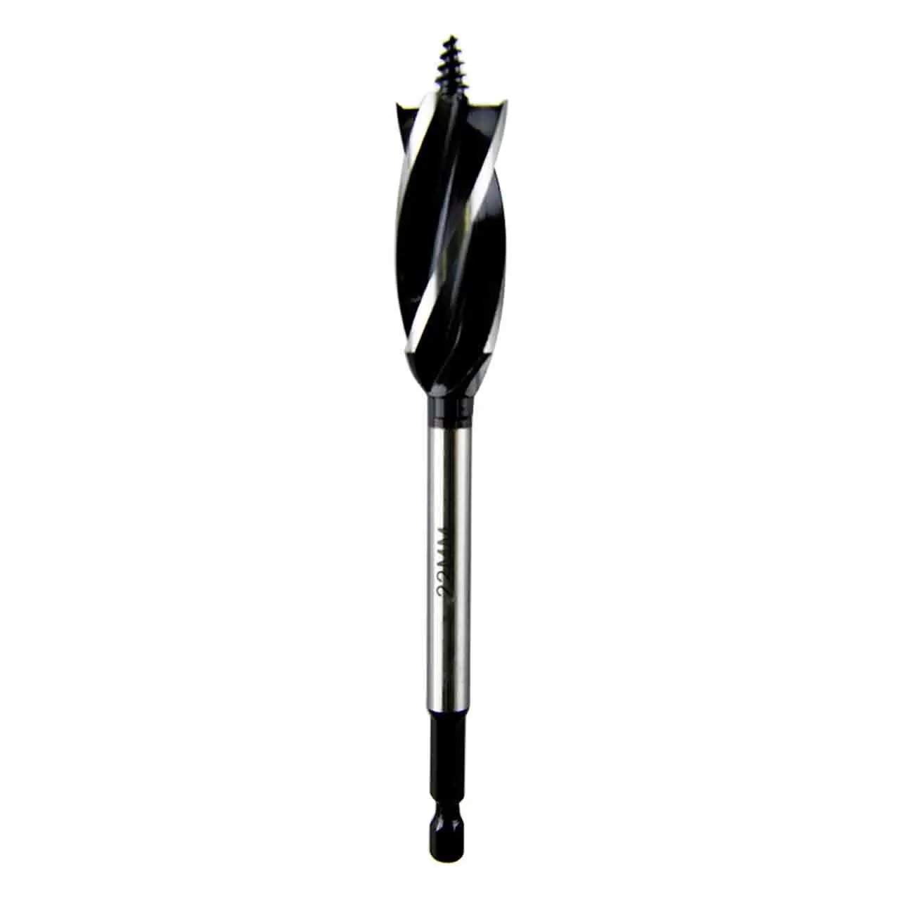 Сверло Левиса из высоколегированной стали с шестигранным хвостовиком обладает повышенной прочностью и износостойкостью, устойчиво к воздействию высоких температур и используется для работ по дереву.