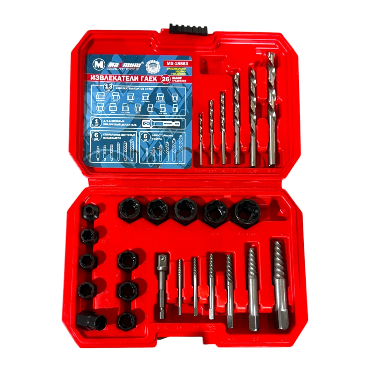 Набор экстракторов болтов HSS, 5 предметов, М3-М18, в пластиковом желтом футляре, "MAXIMUM" MX 15494