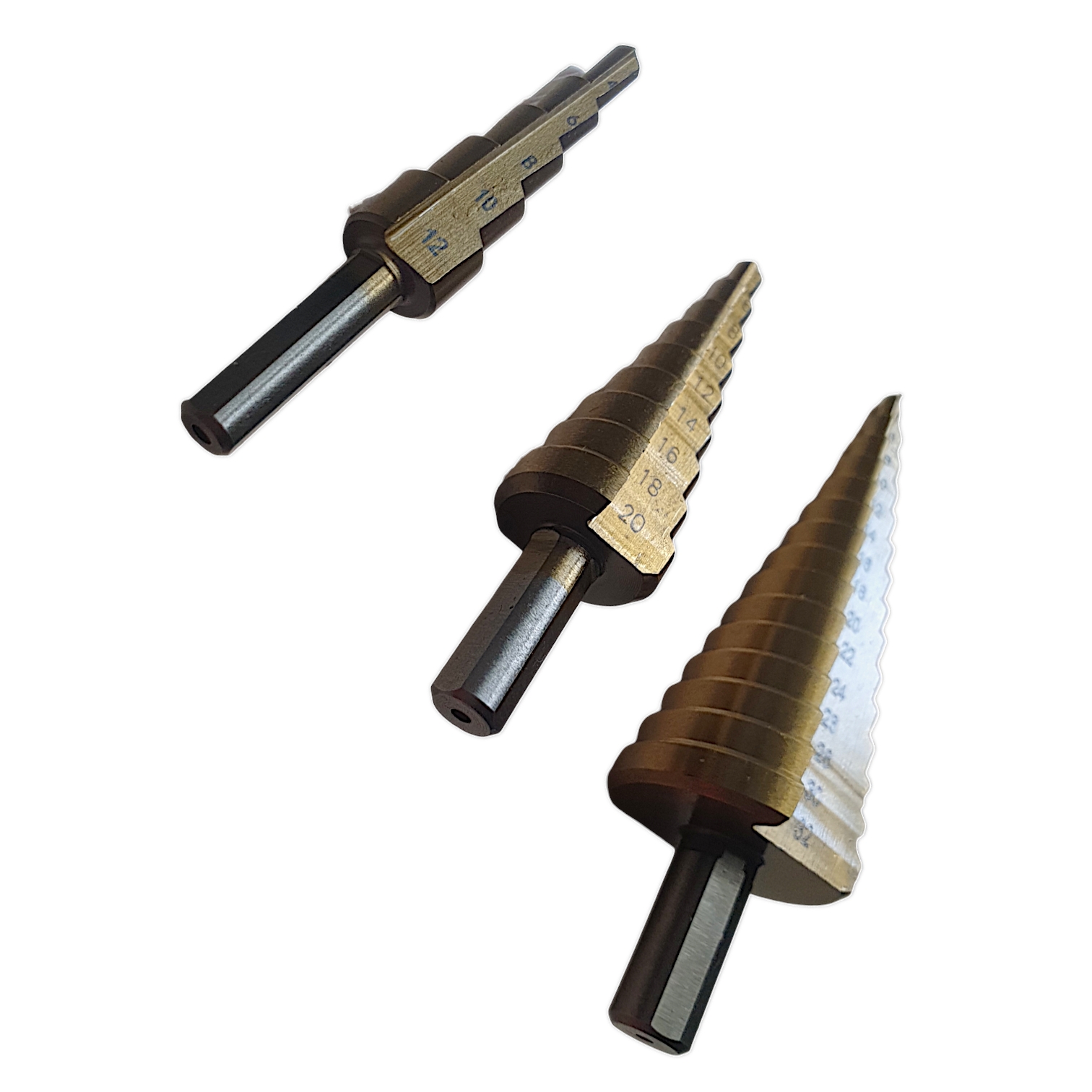 Набор сверл ступенчатых на 4-12 мм, 4-20 мм ,4-32 мм предназначен для работ с металлическими поверхностями. Сверла имеют ступенчатую конструкцию, что значительно расширяет диапазон их действия и повышает точность выполнения работ. Данные насадки используются на сверлильных станках и с электродрелями.
